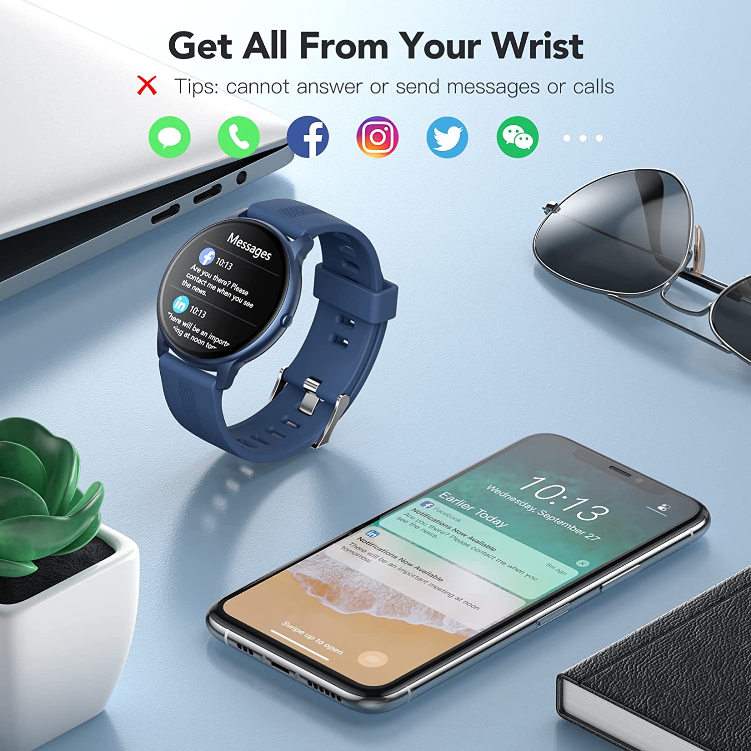 - Your Watch, Your Style 1.3/33mm touch screen covered with an aluminum alloy frame, so elegant and light to wear, but sturdy and anti-scratch. The smart watch contains 5 dials readily available to choose from along with another 30 more dials within the app. You can also customize your watch faces. It can be any photo, such as your family, pet ,etc. NOTE: When there is a software update prompt on the APP, it is recommended to upgrade to the latest software version for a better experience!